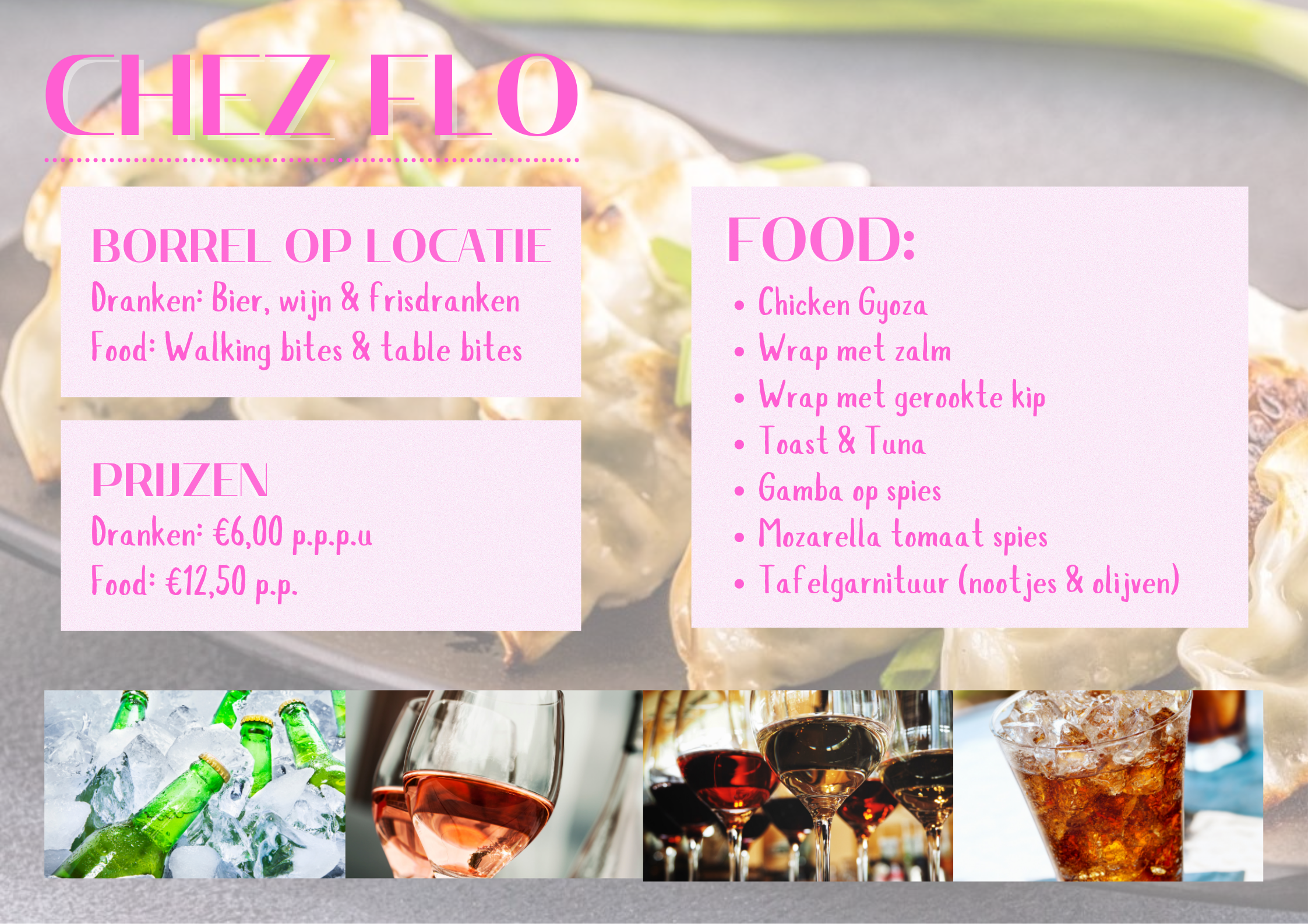 Van bruiloften tot bedrijfsfeesten of verjaardagen, bij Chez Flo maken we speciale gelegenheden extra bijzonder. Ons team werkt nauw samen met jou om een menu te creëren dat perfect past bij de sfeer en stijl van je evenement. Laat ons de culinaire zorgen overnemen, zodat jij je kunt concentreren op het genieten van deze speciale dag. Heb je nog geen specifiek idee over de invulling van de catering? Bekijk hier een voorbeeld van één van onze samengestelde borrels.